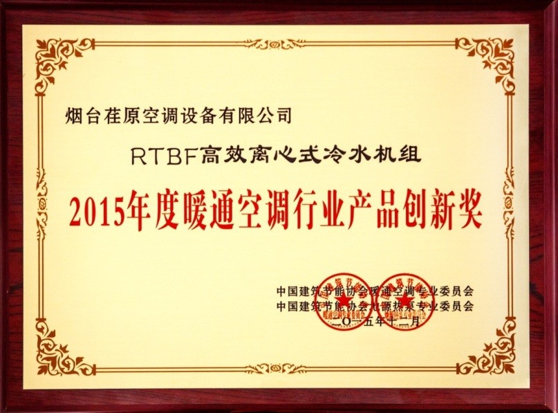 荏原离心机获“2015暖通空调行业产品创新奖”