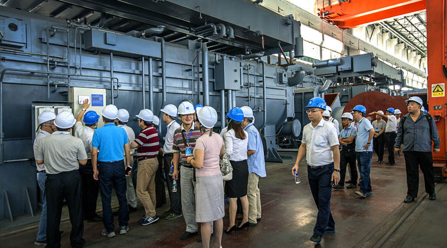 专家们先后参观了荏原冷热(中国)吸收式工厂、电制冷和冷却塔工厂两大厂区,零距离考察了荏原的制造环境和产品的组装工序。火热而有序的制造现场,鳞次栉比、种类繁多的大型冷热设备,荏原为诸位专家呈现了一番宏大的制造场面。在这里可以看到制造中的大型防爆余热利用型制冷机、单机冷量1000万大卡/小时的吸收式制冷机、单机制热能力50MW的大型吸收式热泵和一台台包装完好、整装待发的离心式冷水机组……荏原围绕冷、热事业展示出的整体产业链及专业的定制实力感染了每位与会专家,纷纷感叹”原来荏原的吸收式制冷机、吸收式热泵可以做得这么大!“、”荏原离心机竟然有这么大的产销量!、“荏原太低调了,这么多好的产品应该多推广,让更多的设计师知道!”……