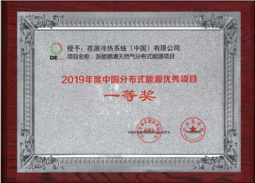 值得一提的是,荏原为浙能德清天然气分布式能源站提供集中供冷供热项目也榜上有名,被评选为2019中国分布式能源优秀项目奖:一等奖。