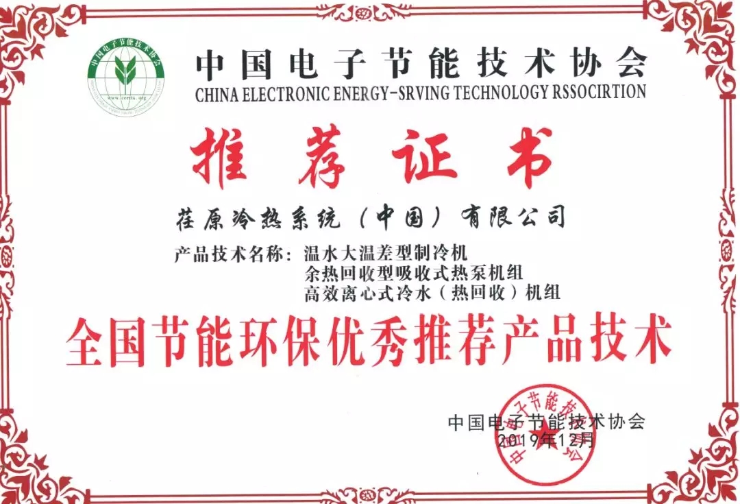 今年共有289家企业参与优秀节能环保产品技术评审,本次会上,通过工信部专家评审组的一致审核,荏原申报的”温水大温差型制冷机“、”余热回收型吸收式热泵机组“、“高效离心式冷水(热回收)机组”得到了行业专家的一致认可,入选全国节能环保优秀推荐产品技术。