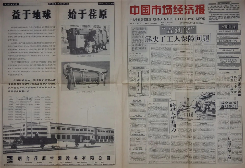 经典是永远不会被遗忘的!近日,荏原冷热系统(中国)有限公司收到一位“铁粉”的邮寄资料,打开之后是一张完整的关于中共中央党校主办、中国市场经济报于1998年报道过的有关《益于地球始于荏原》的一份报道。