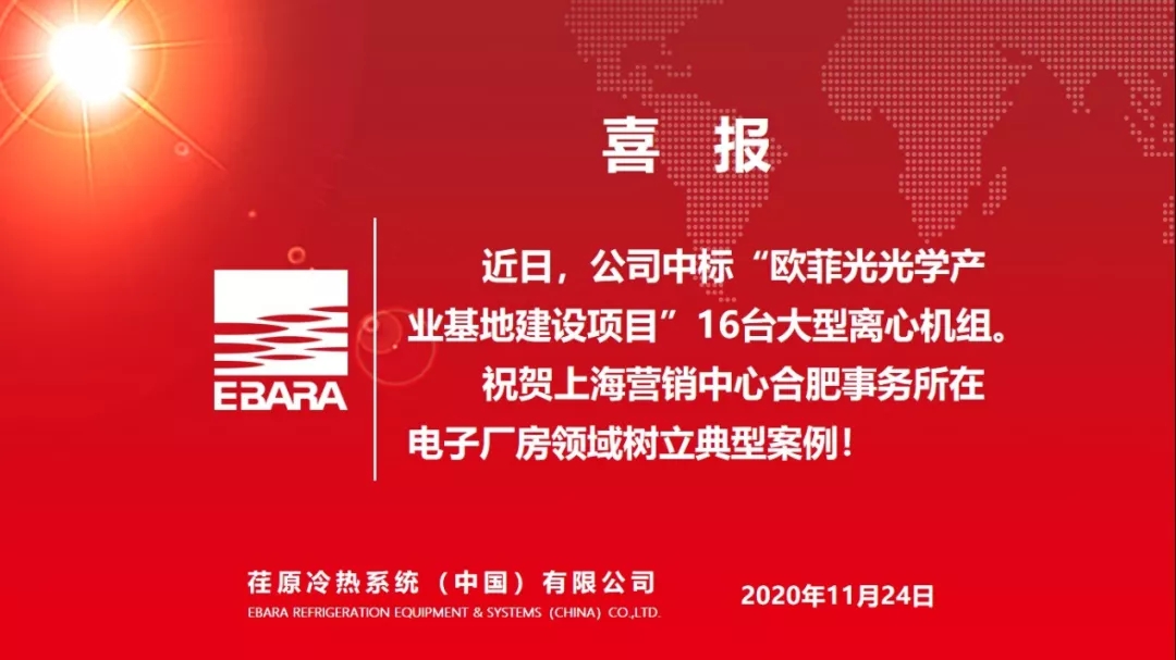 近日,荏原成功中标欧菲光光学产业基地建设项目,为该项目提供16台大型离心机组,总冷量22600RT,助力欧菲光光学产业基地建设项目打造集信息化、自动化、智能化于一体的现代化高科技电子产品生产厂房。