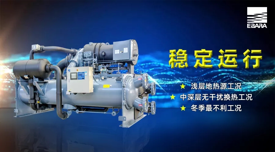 荏原冷水(热泵)机组在该项目中表现优异,在中深层无干扰换热工况、浅层地热源工况及冬季最不利工况等多种工况下均能高效利用地热,稳定的为数字小镇提供冷暖服务。冷水(热泵)机组提取中深层地热、浅层地热进行供冷供热的方式,具有绿色低碳、清洁环保的特点,在用户侧替代燃煤,节约天然气,是低碳供热的重要措施。